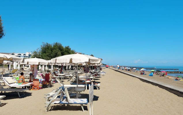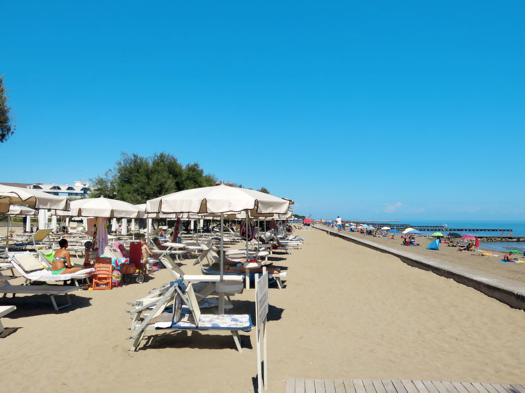 Groot, mooi vakantiecomplex "Villaggio A Mare", van 4 verdiepingen. 80 huizen in de plaats. 130 appartementen in de woning. In de wijk Lido Altanea, 4 km van het centrum van Caorle, 1.5 km van het centrum van Porto Santa Margherita, 75 km van het centrum van Venezia, 500 m van zee. Voor medegebruik: terrein 45.000 m2 (omheind), verzorgde tuin met gazon en planten, openluchtzwembad niervormig (700 m2, seizoensgebonden beschikbaarheid: 23.Apr.-01.Okt.). Kinderzwembad, bubbelbad, kinderspeelplaats. In het complex: receptie, restaurant, bar, bistro, Internet (WiFi), winkel, kiosk. Supermarkt 600 m, station "San Donà (Milano-Venezia-Triest)" 28 km, zandstrand 500 m, overdekt zwembad 400 m. Golfterrein (18 holes) 4 km. De eigenaar accepteert geen jeugdgroepen. Per appartement / huis 2 ligbedden en 1 parasol bij het zwembad.